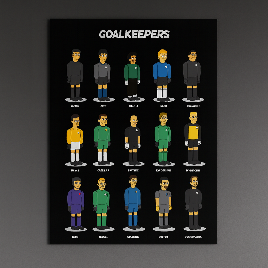 A limited-edition set created exclusively for Black Week. The T-shirt features a clean, modern illustration of legendary goalkeepers from different eras — a tribute to those who defined the position. Paired with the matching high-quality poster, it’s a collectible set that brings goalkeeper culture into your everyday life.